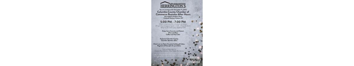 Check-in and enter for a chance to win prizes. Herrington's Inc. is opening their showroom doors to the Chamber Community for a holiday Business After Hours. We can't wait to see you there!